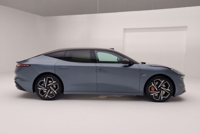 On the side, the new Lynk & Co Z10 features a sleek and streamlined design, thanks to its ideal 1.34:1 golden width-to-height ratio, giving it a sharp and aggressive look. Its distinctive design language makes it easily recognizable and allows it to stand out in traffic. In terms of dimensions, the Z10 measures 5028mm in length, 1966mm in width, and 1468mm in height, with a wheelbase of 3005mm, providing ample space for a comfortable ride. Notably, the Z10 boasts a remarkably low drag coefficient of just 0.198Cd, leading the way among mass-produced vehicles. Additionally, the Z10 has a strong low-slung stance with a standard ground clearance of 130mm, which can be further reduced by 30mm in the air suspension version. The minimal gap between the wheel arches and tires, combined with the dynamic overall design, gives the car a sporty character that can rival the Xiaomi SU7.