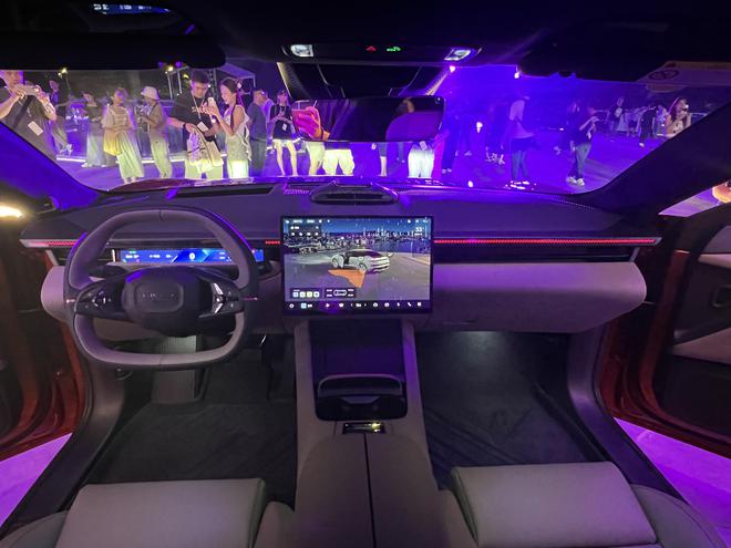 The steering wheel features a two-tone design paired with an oval-shaped decoration in the center, giving it a highly futuristic look. Inside, the car is also equipped with a HUD (Head-Up Display), projecting a 25.6-inch image at a distance of 4 meters. This display, combined with a semi-transparent sunshade and the instrument cluster, creates an optimal visual experience for displaying vehicle and road information, enhancing driving safety and convenience.