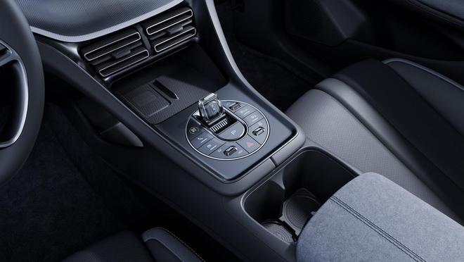 The steering wheel features a flat-bottom, four-spoke design, wrapped in leather and accented with metal trim. The fully digital instrument panel is minimalist, displaying key information such as battery levels and range at a glance. The door handles have an interesting shape, resembling the flippers of a sea lion. The "Ocean Heart" control center houses a crystal gear lever along with buttons for common functions such as vehicle start, volume adjustment, and air conditioning control. A 50W wireless charging pad is provided in the front storage slot, while the hollowed-out storage space below includes a Type A and a 60W Type C charging port.