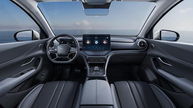 The floating dashboard of the Sea Lion 05 DM-i extends outward like flowing tides, seamlessly connecting with the door panels on both sides, creating a wraparound effect. The center console is equipped with a 15.6-inch adaptive rotating floating pad, featuring BYD's DiLink intelligent network system. The air conditioning vents on both sides combine ripple-like and rectangular structures, designed to mimic the cross-shaped glimmering effect seen on the ocean surface.